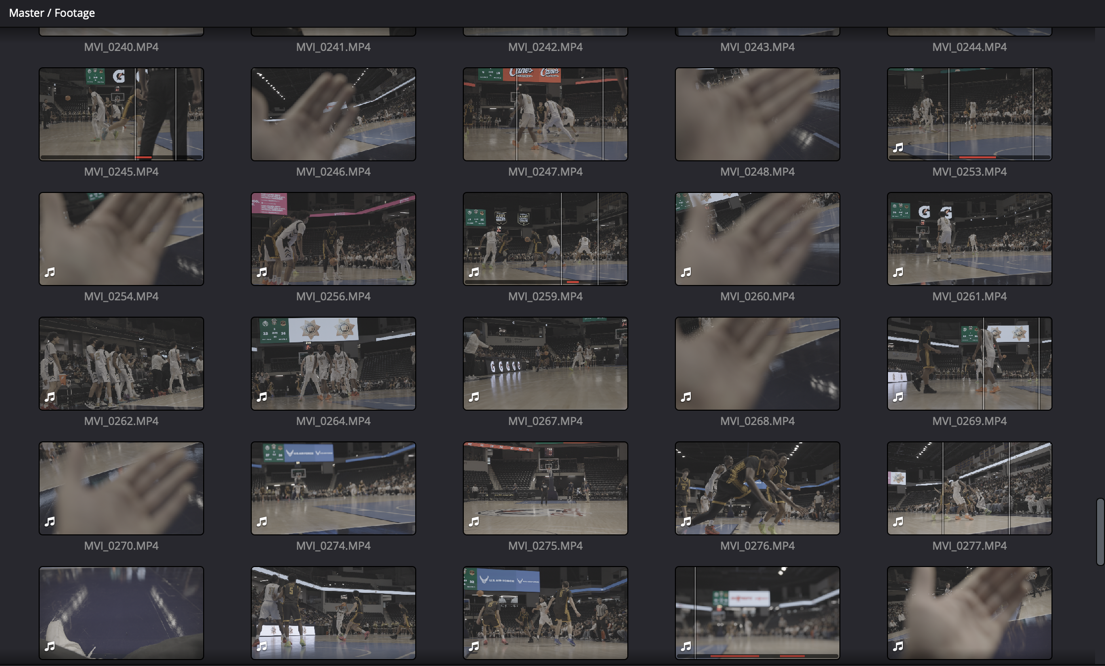 I’m always moving. Tight detail shots. Wide establishing shots. Elevated angles. Low angles near the baseline. The goal is to build contrast so the edit feels dynamic instead of repetitive.